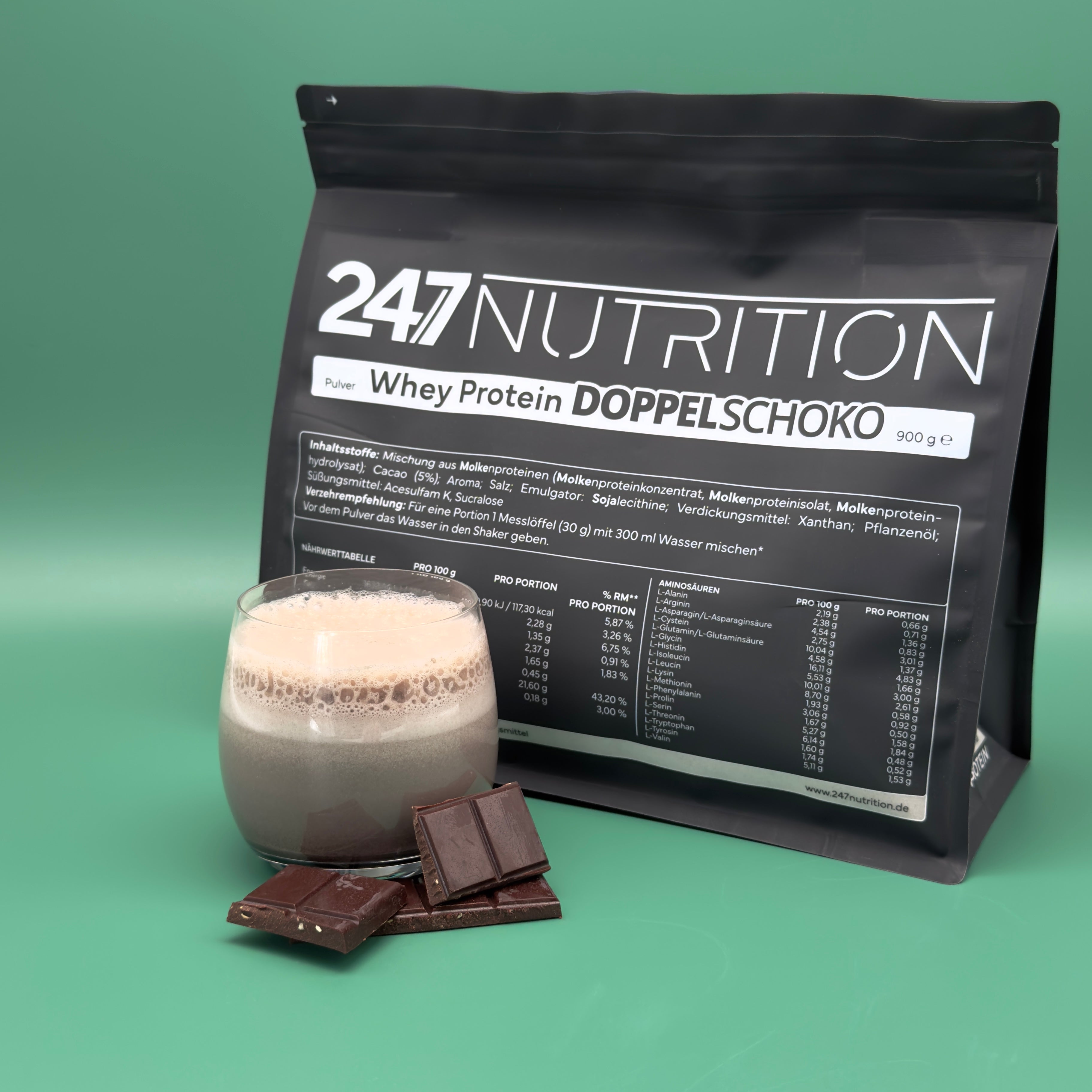 Durch die regelmäßige Einnahme unterstützt Protein nachweislich den Aufbau und Erhalt von Muskelmasse sowie die Erholung nach dem Training – für mehr Fortschritt, bessere Trainingsresultate und langfristige Leistungsfähigkeit. Ob du Leistungssportler bist, oder einfach ein aktiven Lebensstil hast - unser Whey Protein ist ganz nach dem 24/7-Motto dein Unterstützer für jeden Tag.
